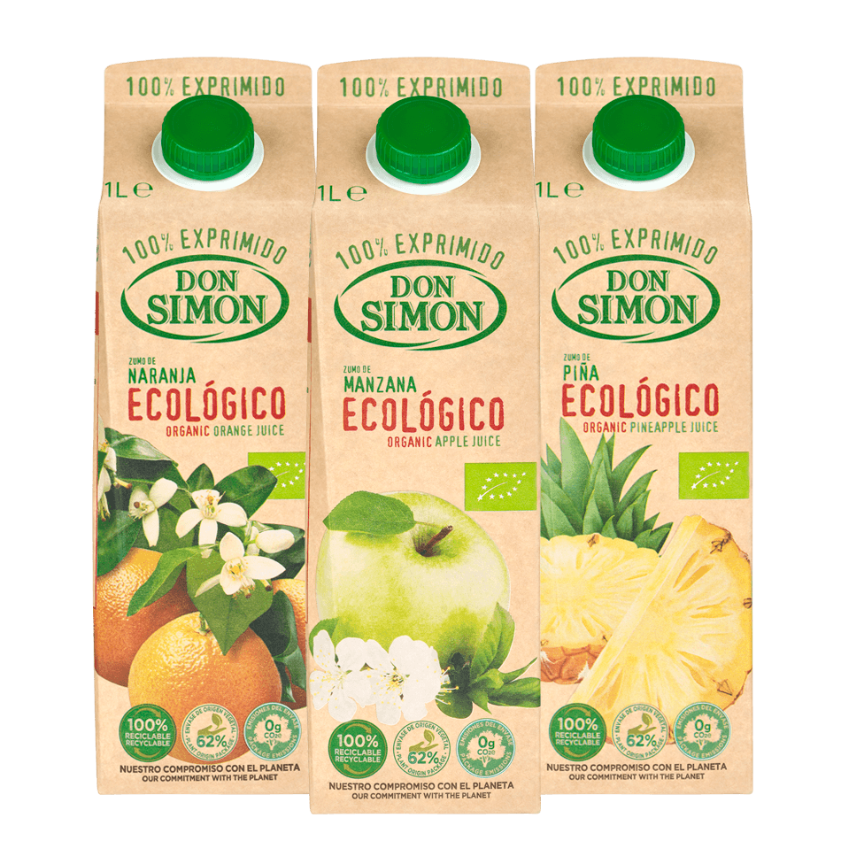 Zumo de frutas 100% exprimido, procedente de cultivos ecológicos.